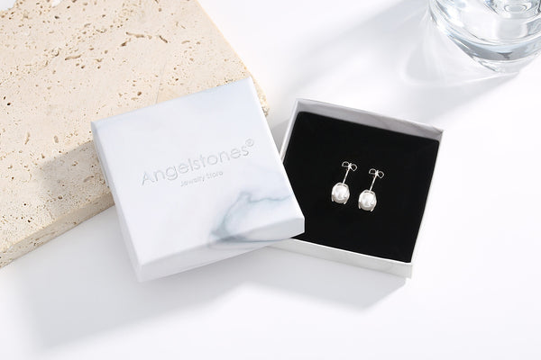 Angelstones 18K Gold Plated Sterling Silver Stud Earrings, Pearl Earrings for Women Angelstones 18K Gold Plated Sterling Silver Stud Earrings, Pearl Earrings for Women
