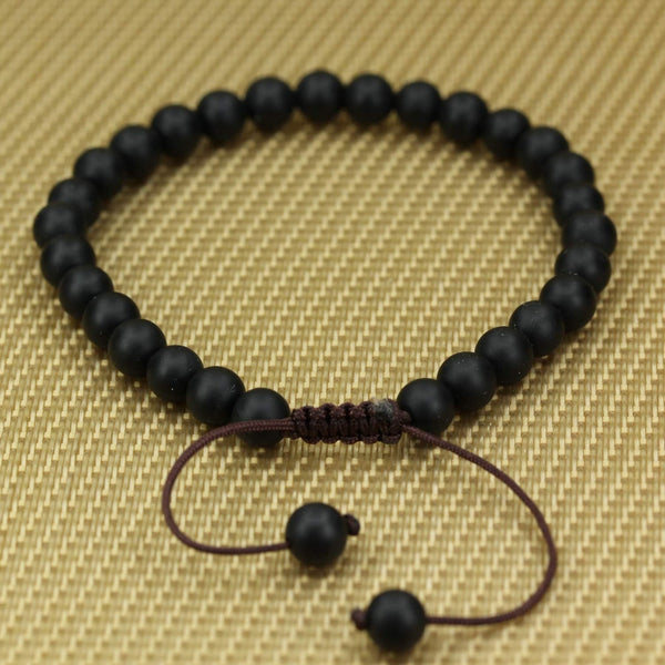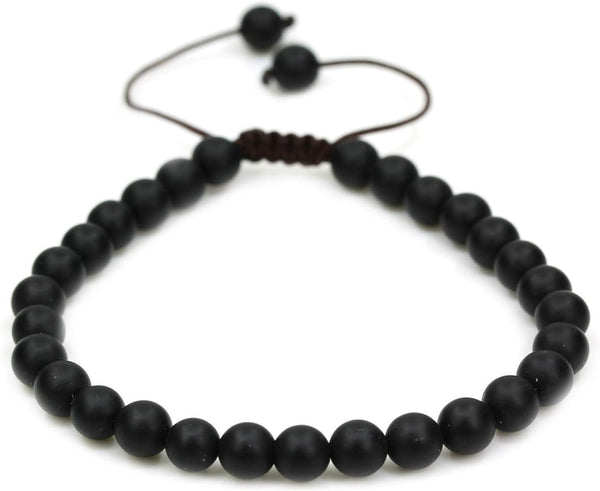 Angelstones Handmade Gemstone 6mm Matt Black Agate Round Beads Adjusta
