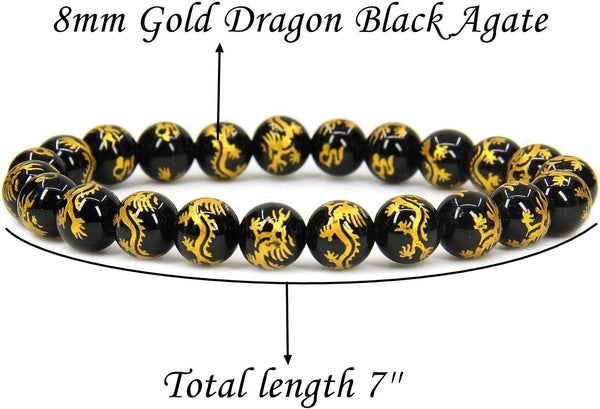 Angelstones Natural Gold Dragon Black Agate 8mm Round Beads Stretch Bracelet 7inch Unisex Angelstones Natural Gold Dragon Black Agate 8mm Round Beads Stretch Bracelet 7inch Unisex