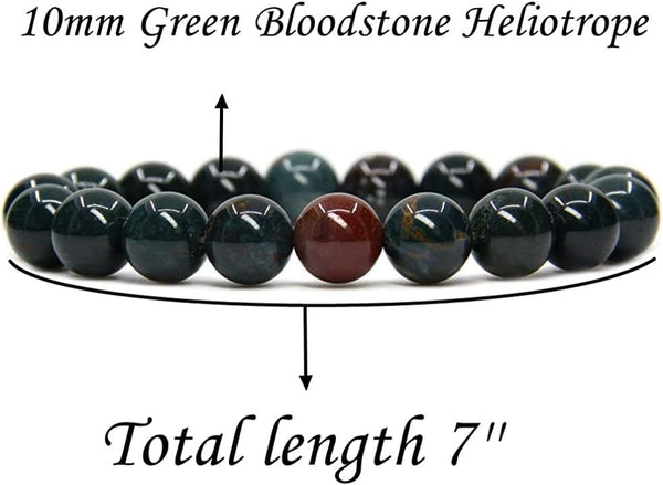 Angelstones Natural Green Bloodstone Heliotrope Genuine Semi-Precious Gemstones Healing 10mm Beaded Stretch Bracelet 7inch Unisex Angelstones Natural Green Bloodstone Heliotrope Genuine Semi-Precious Gemstones Healing 10mm Beaded Stretch Bracelet 7inch Unisex
