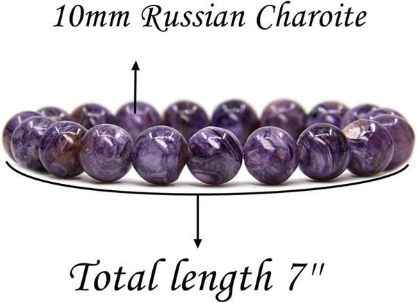 Angelstones Natural Russian Charoite Genuine Semi-Precious Gemstones Healing 10mm Beaded Stretch Bracelet 7inch Unisex Angelstones Natural Russian Charoite Genuine Semi-Precious Gemstones Healing 10mm Beaded Stretch Bracelet 7inch Unisex