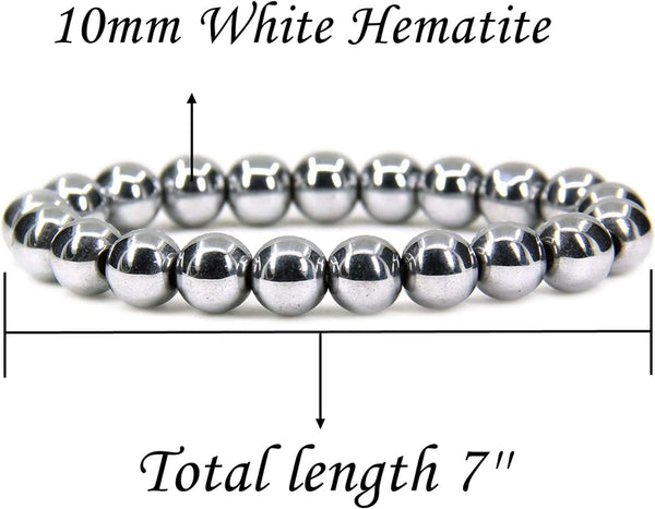 Angelstones Natural White Hematite Genuine Semi Precious Gemstones Healing 10mm Beaded Stretch Bracelet 7inch Unisex Angelstones Natural White Hematite Genuine Semi Precious Gemstones Healing 10mm Beaded Stretch Bracelet 7inch Unisex