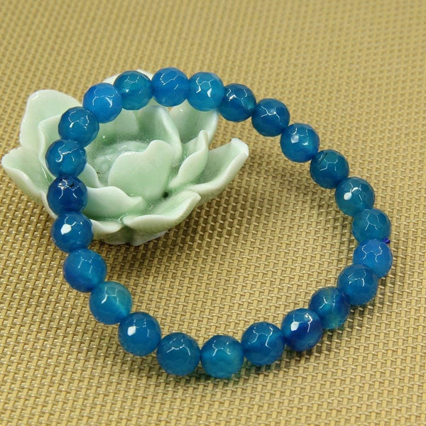 Natural Faceted Blue Agate Gemstone 8mm Round Beads Stretch Bracelet 7inch Unisex Natural Faceted Blue Agate Gemstone 8mm Round Beads Stretch Bracelet 7inch Unisex