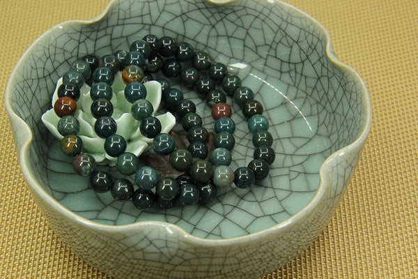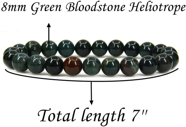 Natural Green Bloodstone Heliotrope Gemstone 8mm Round Beads Stretch Bracelet 7inch Unisex Natural Green Bloodstone Heliotrope Gemstone 8mm Round Beads Stretch Bracelet 7inch Unisex