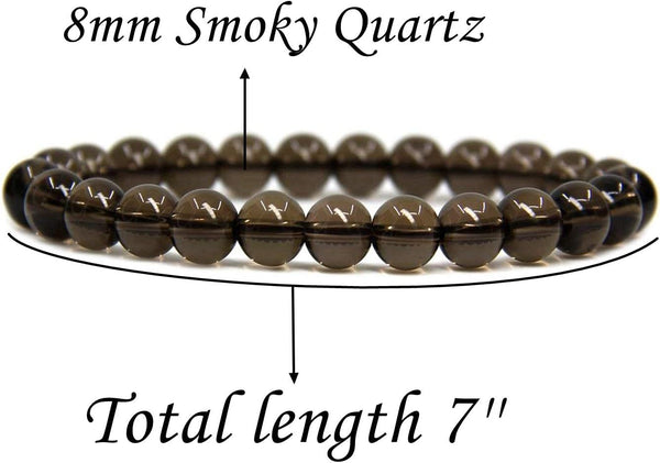 Natural Smoky Quartz Crystal Gemstone 8mm Round Beads Stretch Bracelet 7inch Unisex Natural Smoky Quartz Crystal Gemstone 8mm Round Beads Stretch Bracelet 7inch Unisex